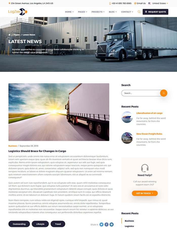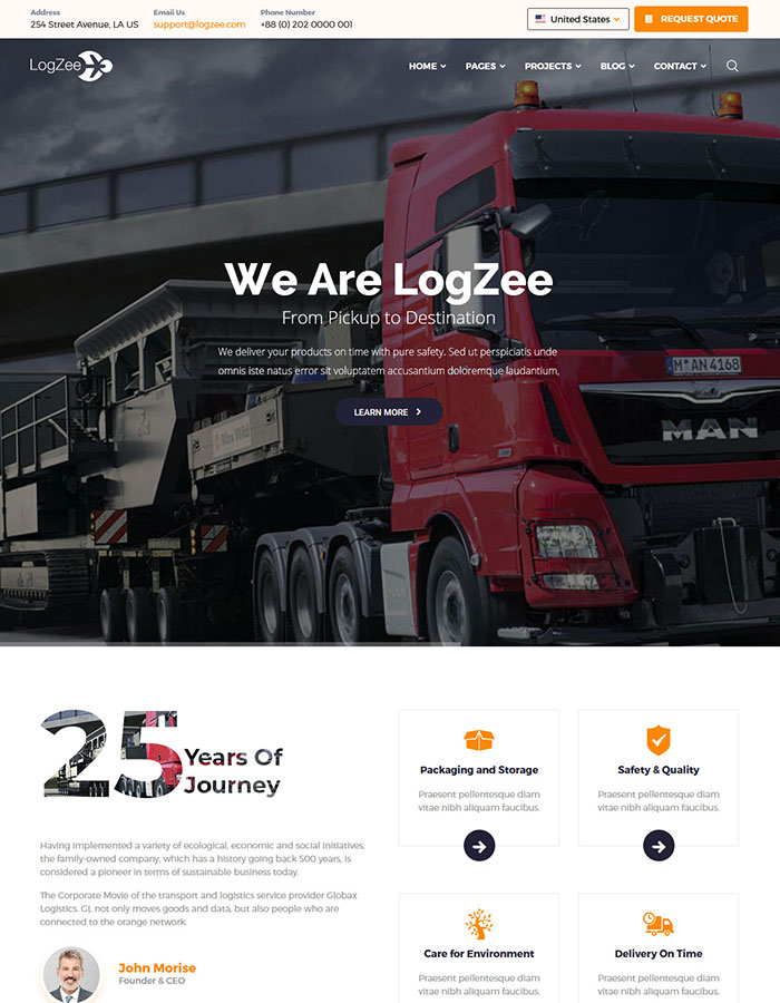 Logzee, a customized and responsive HTML template for transport, logistics, delivery, moving & cargo websites. The best of all features, the pages are optimized for Load Speed and are “B” grade tested on GTmetrix.com. Wait! this is not all, the template also contains ultimate shortcode resource which gives you freedom to create any new page with high interactive features from scratch. It is focused on building business websites in the Transport, Transportation, Logistic company niches.