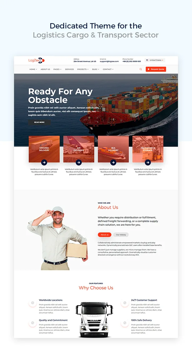 Logzee, a customized and responsive HTML template for transport, logistics, delivery, moving & cargo websites.